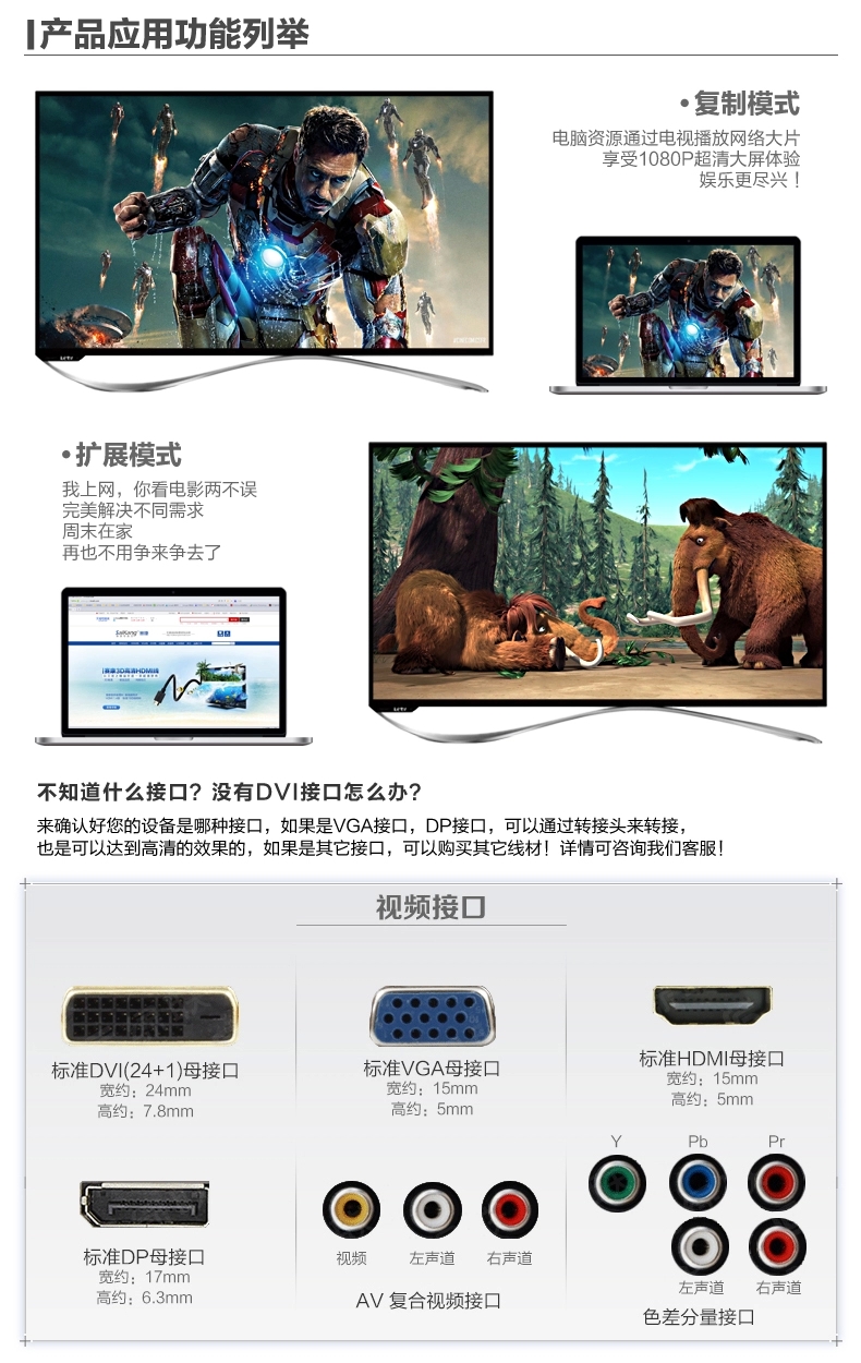 【炫丽色彩】强劲色彩还原,美丽如画!高速数据传输,支持1080P,高清分辨率1920x1200!