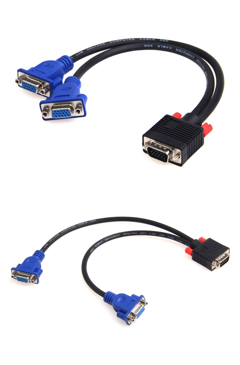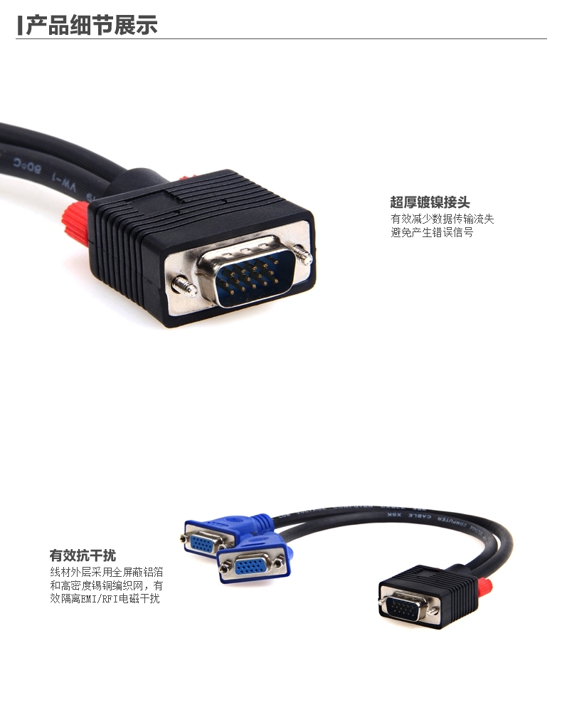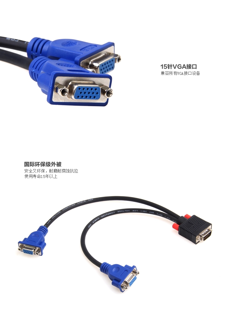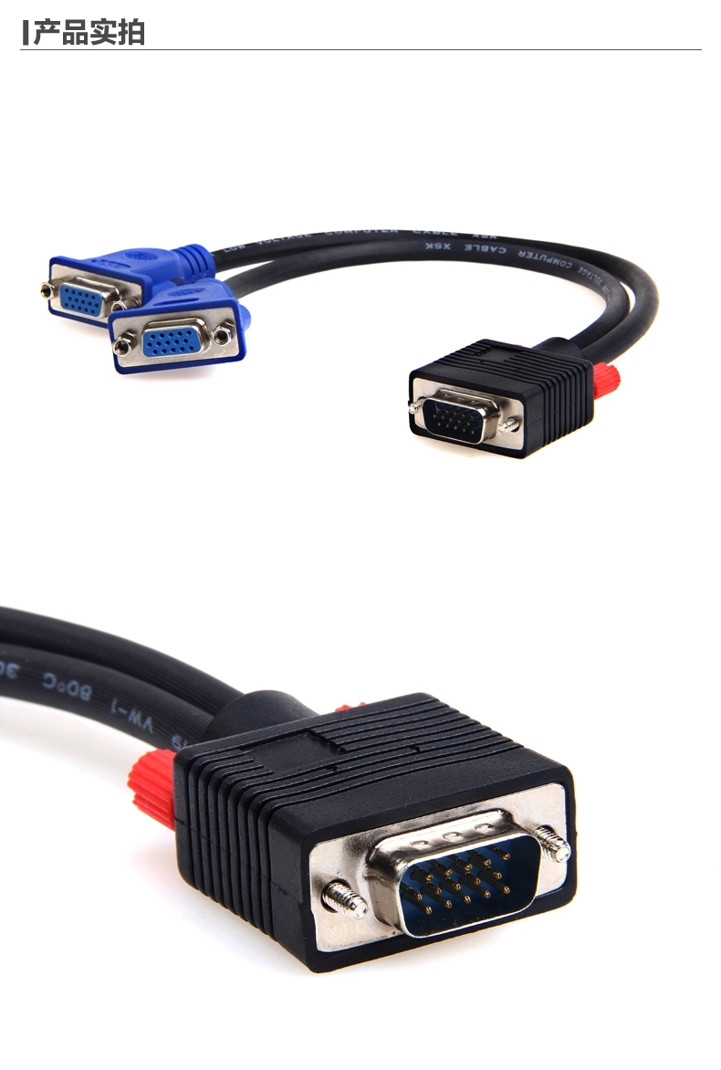 vga 一分二 电脑连接线 高清分屏器 vga一拖二分配器分频器 1分2
