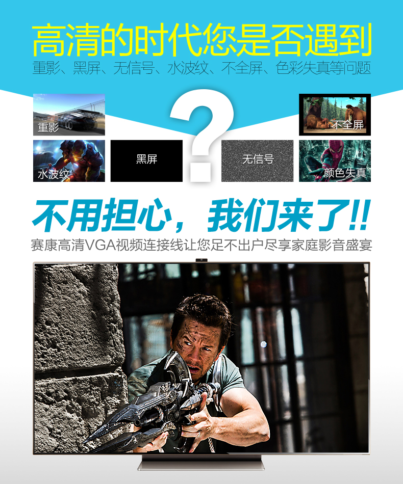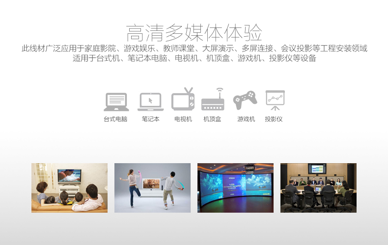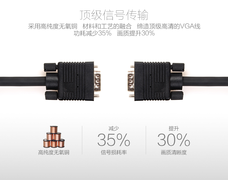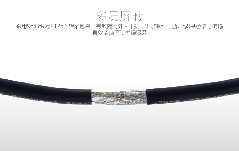 【优良配置】全新模具3+6纯铜线芯,带编制屏蔽层,支持超高分辨率,让工作尽情、娱乐尽兴!