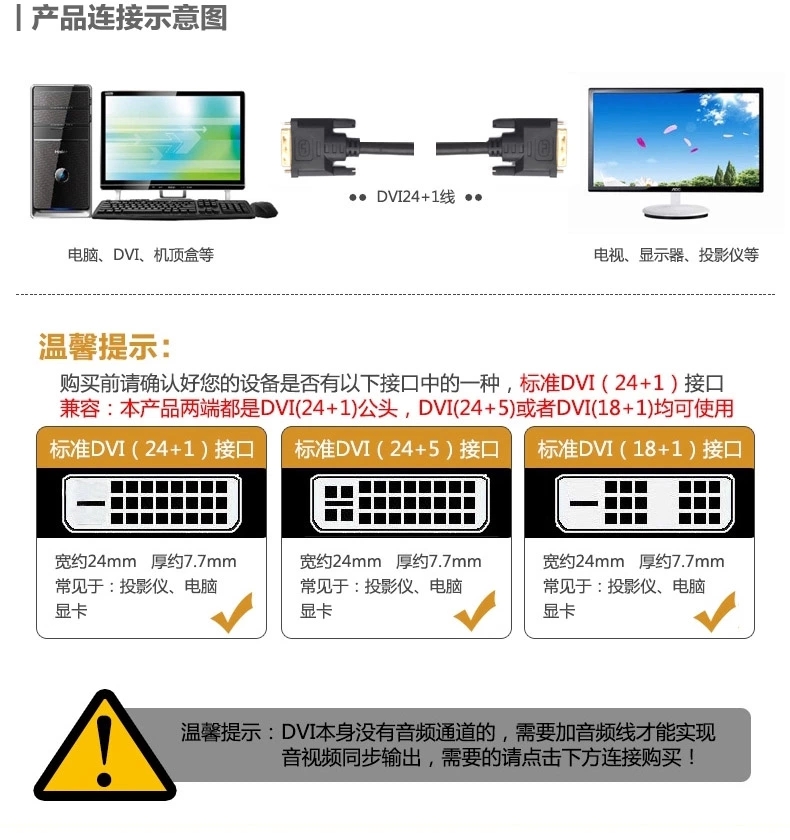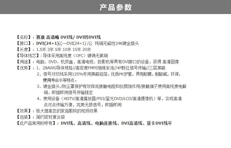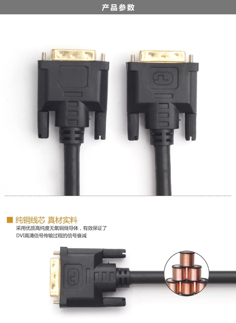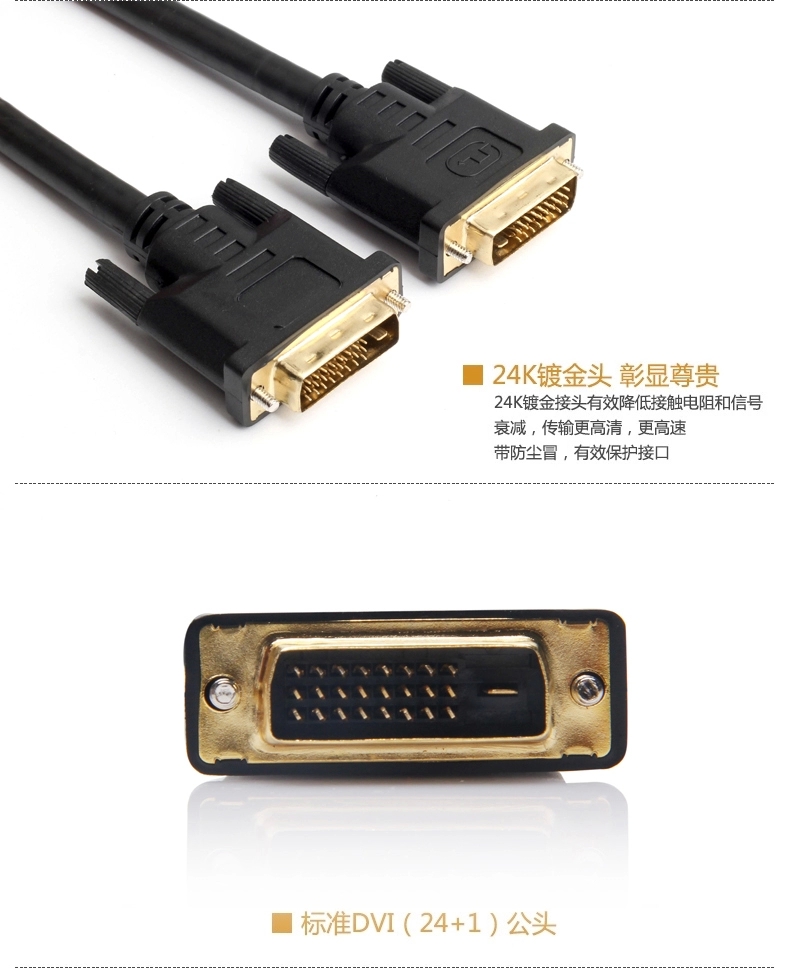 【三年质保】纯铜线芯,24K镀金插头,真正DVI线,承诺三年内有质量问题我们只换不修