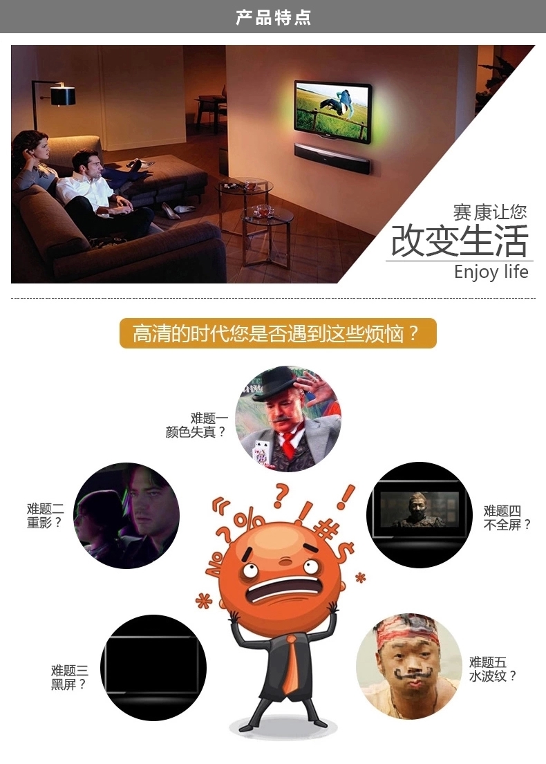 【优质配置】数字双通道,25根铜导体芯线,三层屏蔽抗干扰!画质传输真实,无衰减,更逼真!