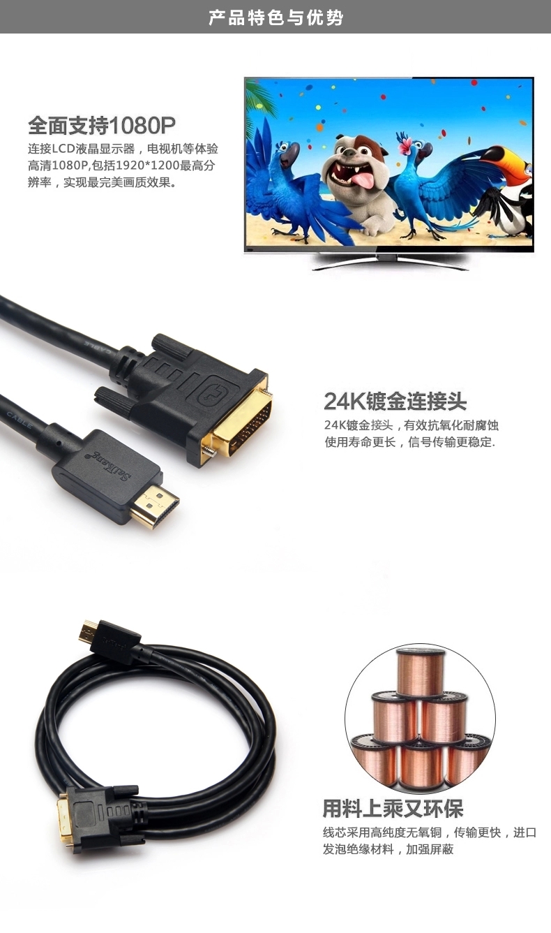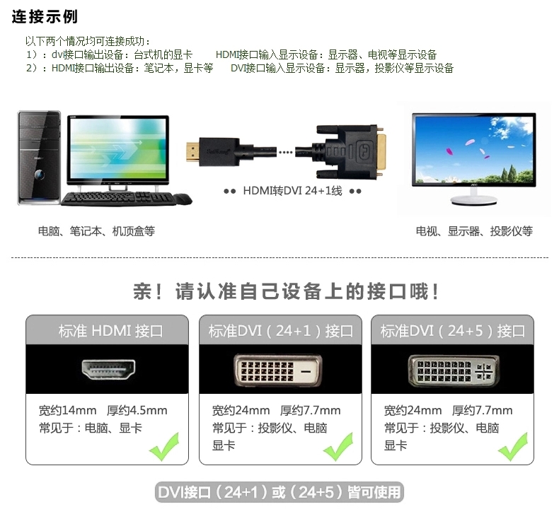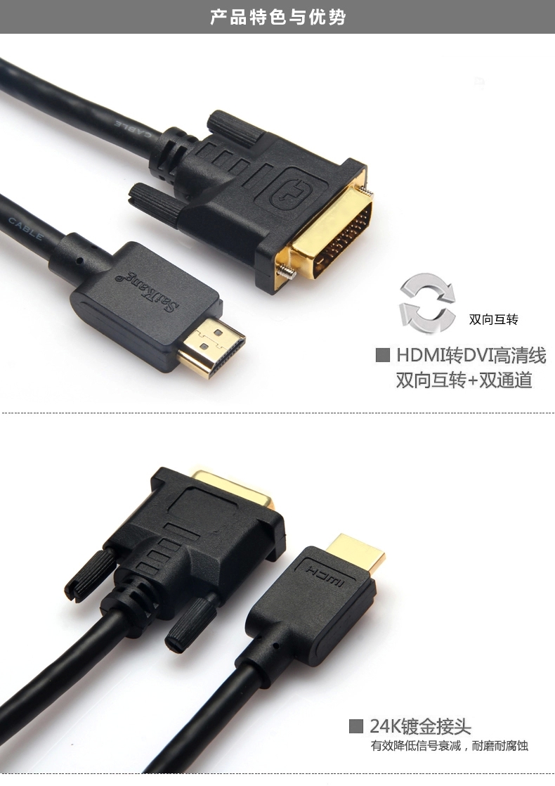 HDMI转DVI线 dvi转hdmi线高清线转接头转换头PS3连可双互转