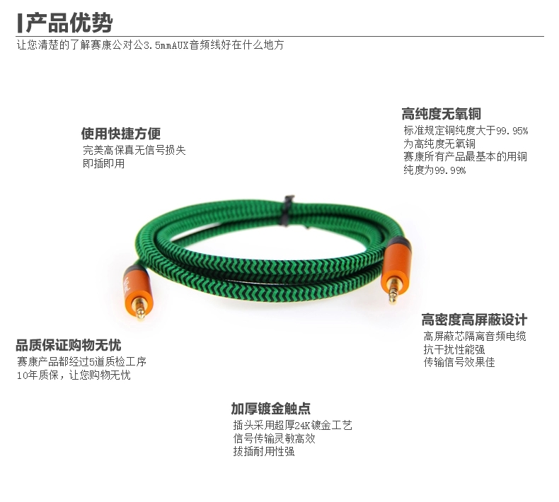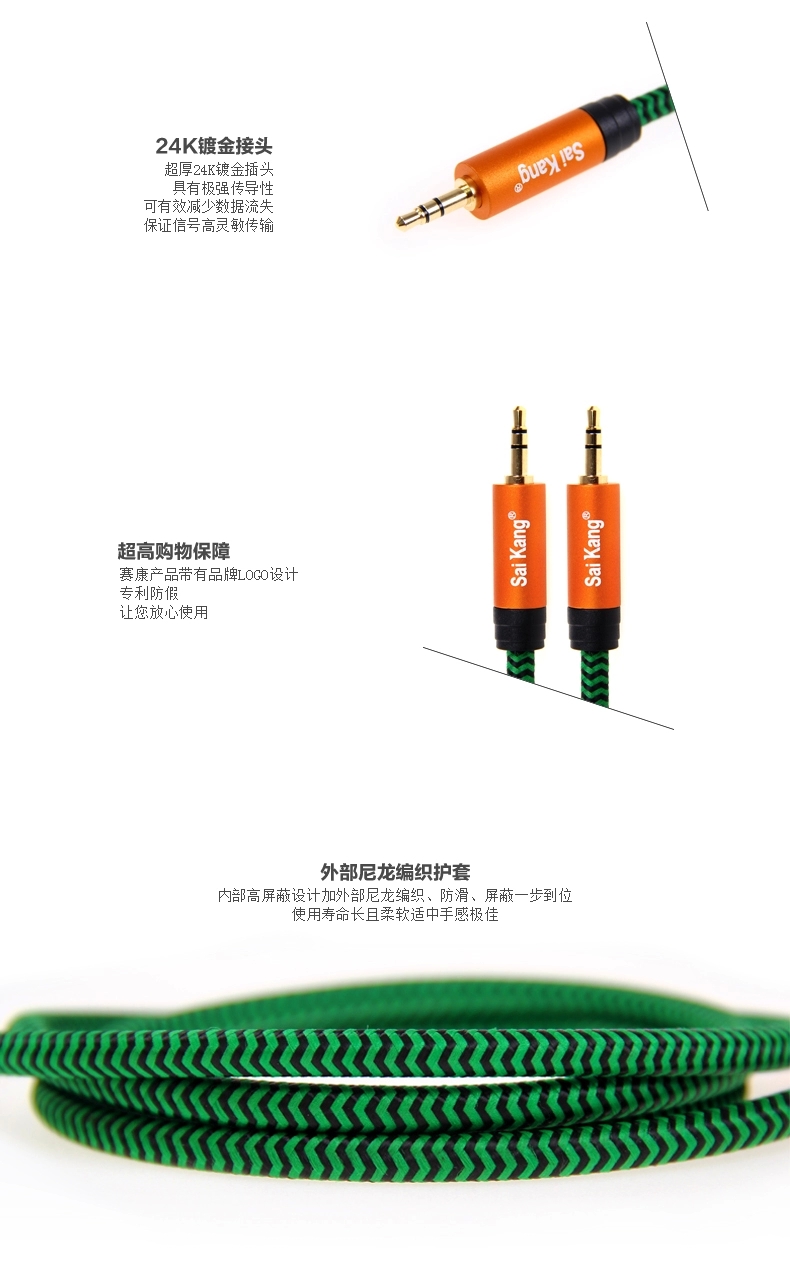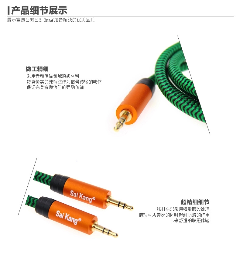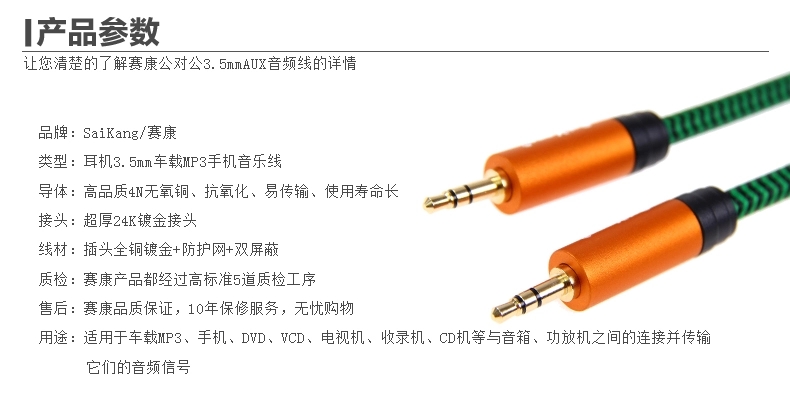 saikang 音频线公对公 AUX3.5车用aux车载发烧连接线