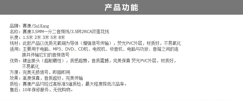 saikang 音频线一分二 工程级 3.5转2RCA双莲花音箱响线