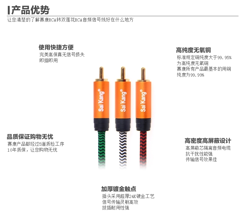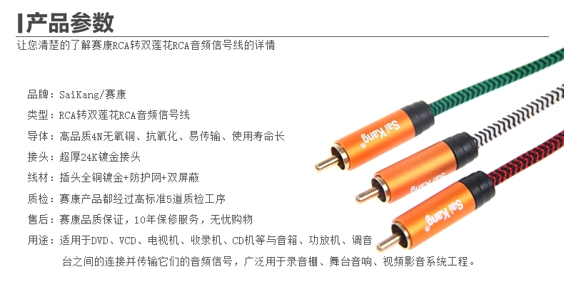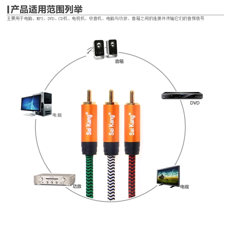 saikang AV208 aux音频线公对公双莲花RCA电视功放音响音箱连接线
