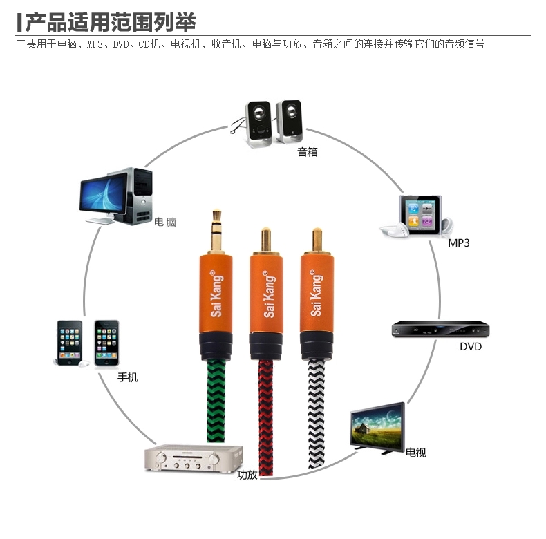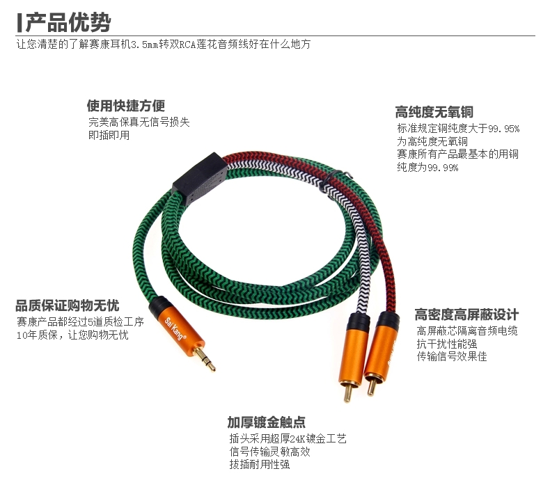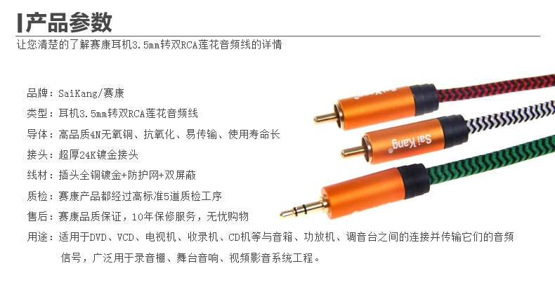 耳机3.5转双莲花 电脑功放连接线 手机音频信号线