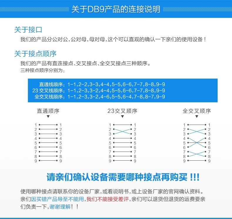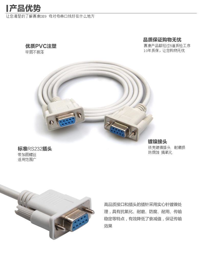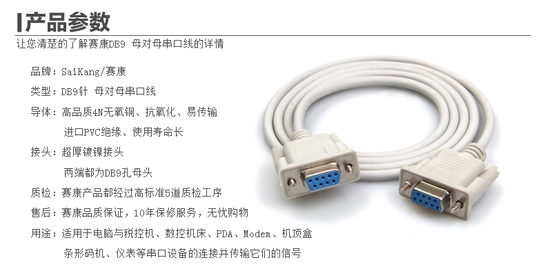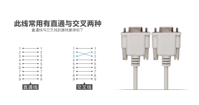 9针串口线 RS232 COM数据线 DB9母对母孔对孔 直连交叉可选