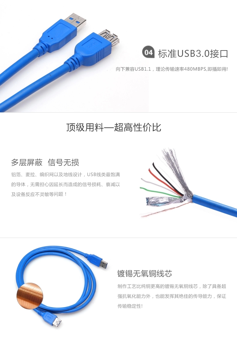 USB 3.0延长线 公对母U盘网卡硬盘数据加长线