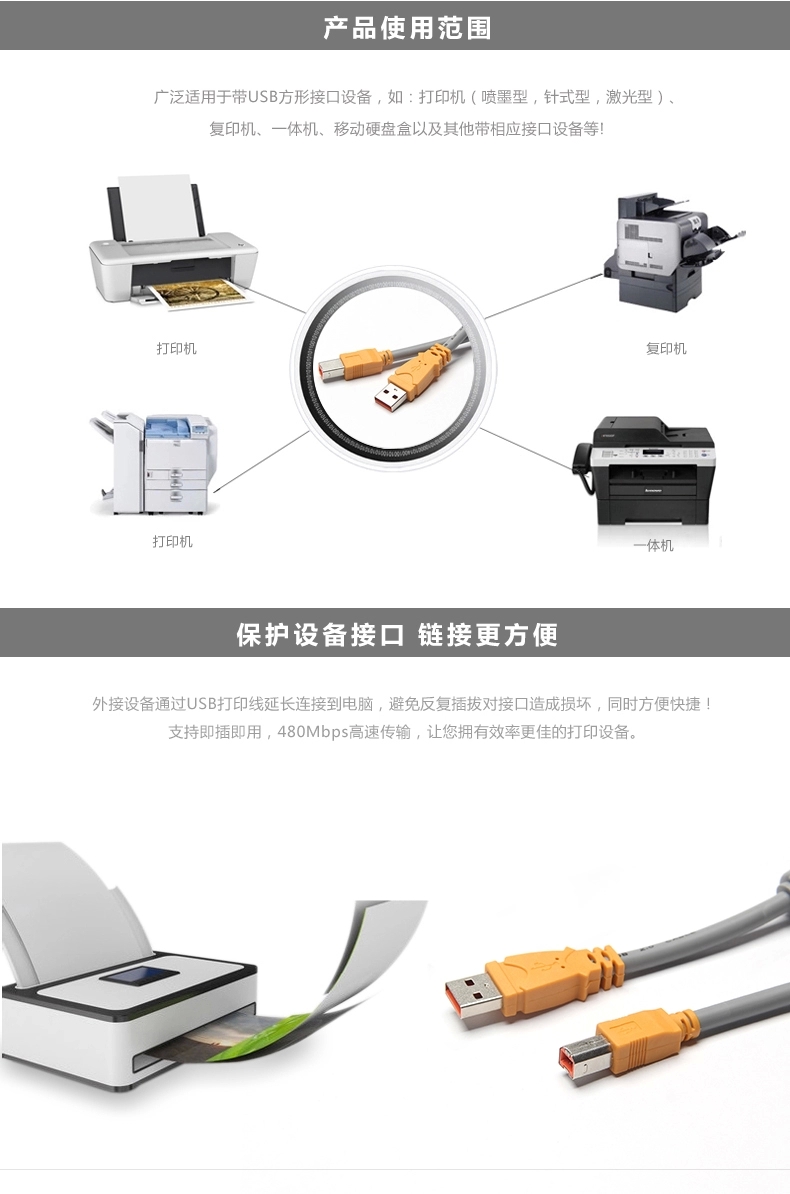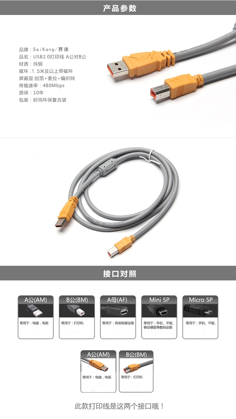 赛康 usb打印机数据线 2.0打印机线 高速方口