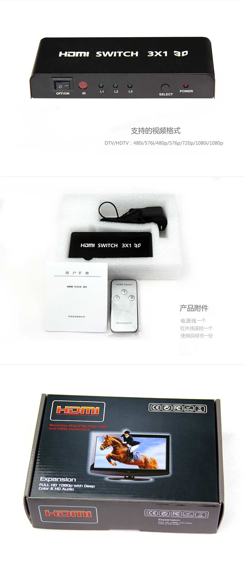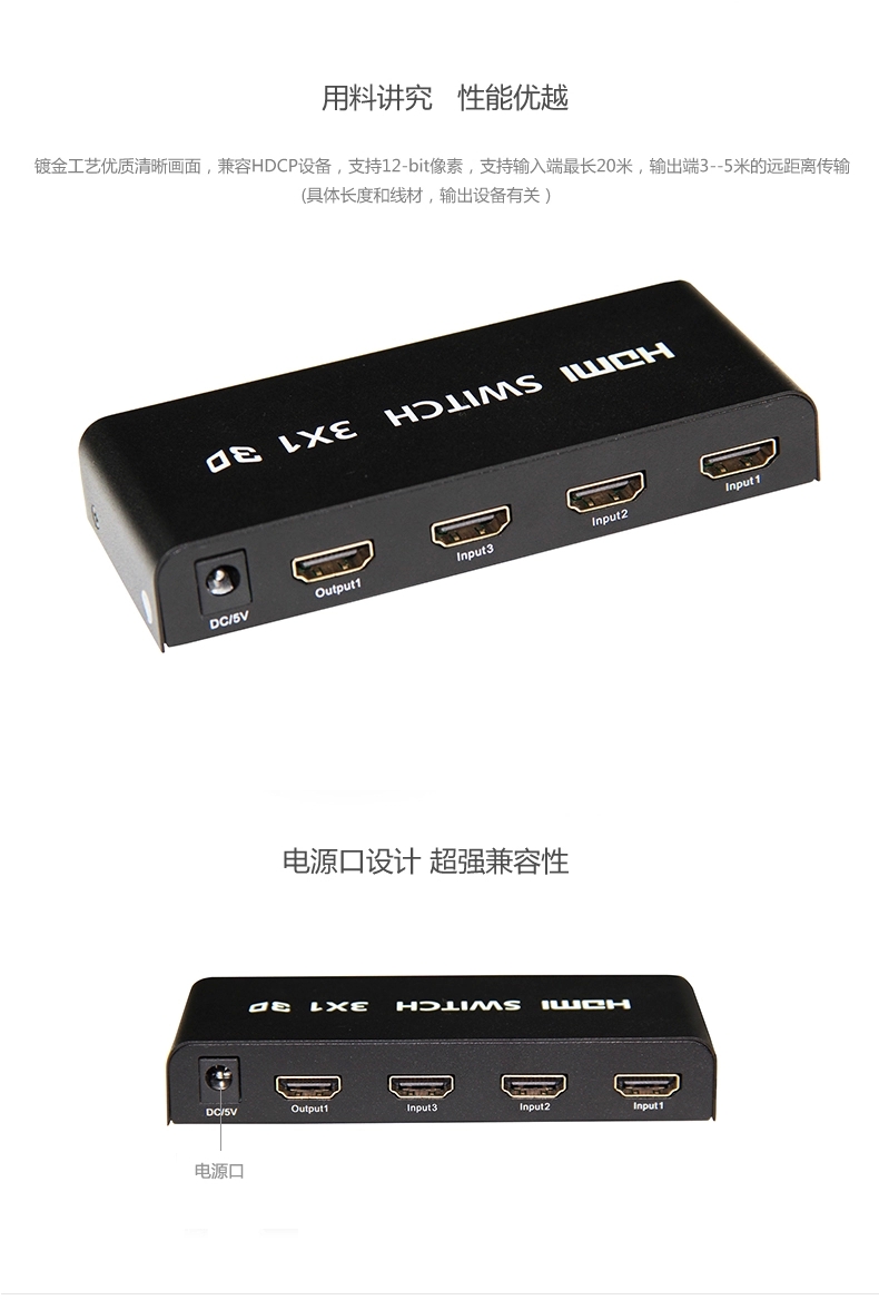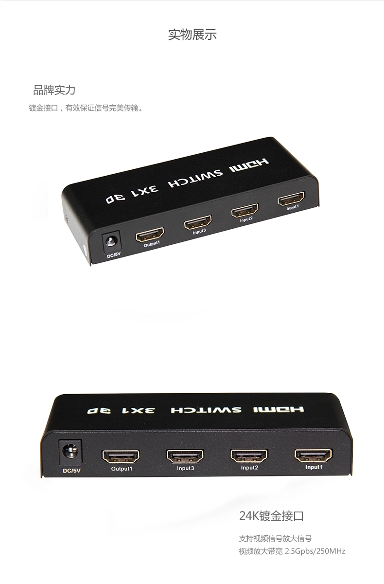 赛康 HDMI切换器 3进1出hdmi分配器三进一出高清视频转换器带遥控