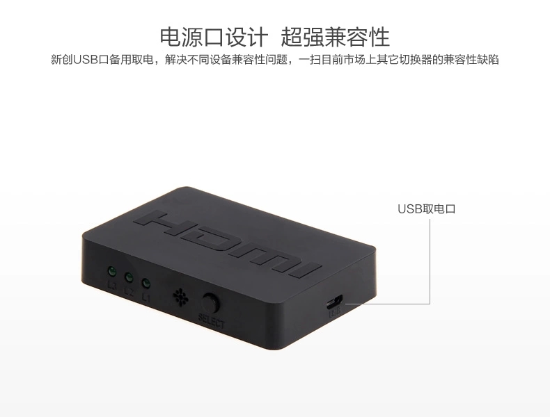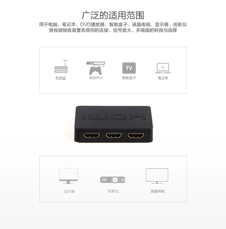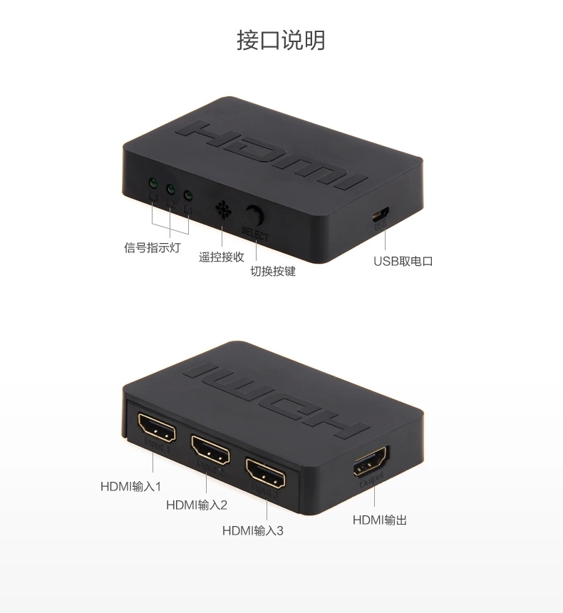 HDMI切换器 3进1出 HDMI分配器 三进一出 高清hdmi集线器1080P