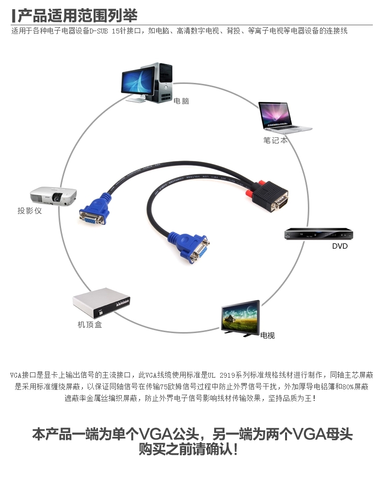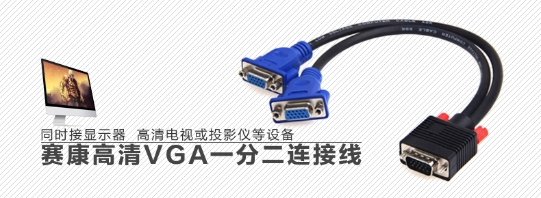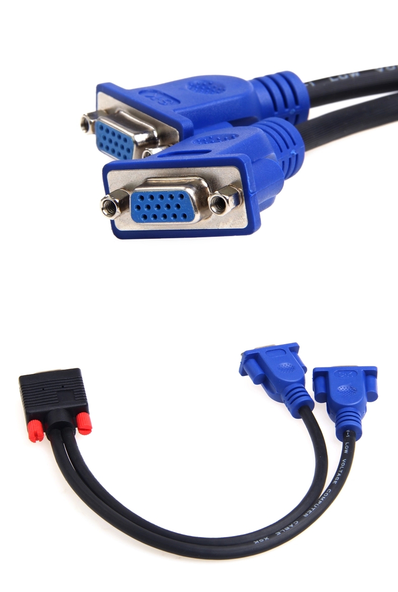 vga 一分二 电脑连接线 高清分屏器 vga一拖二分配器分频器 1分2