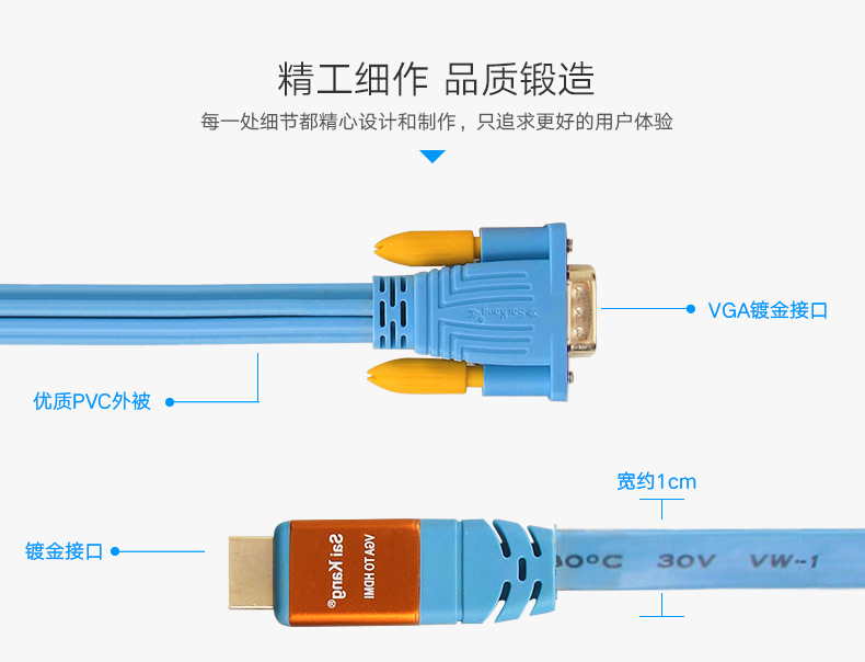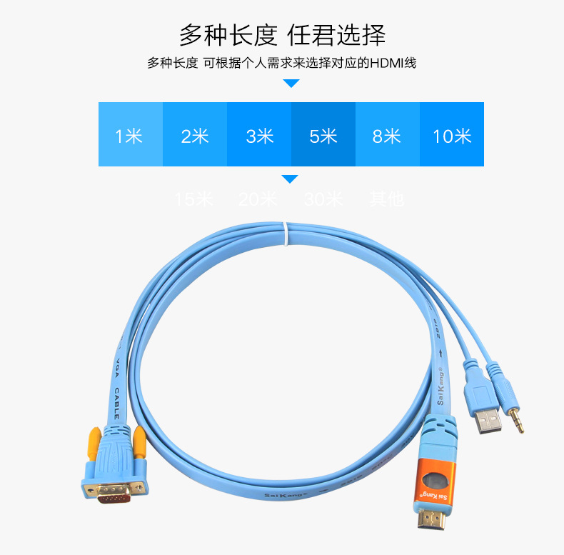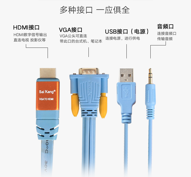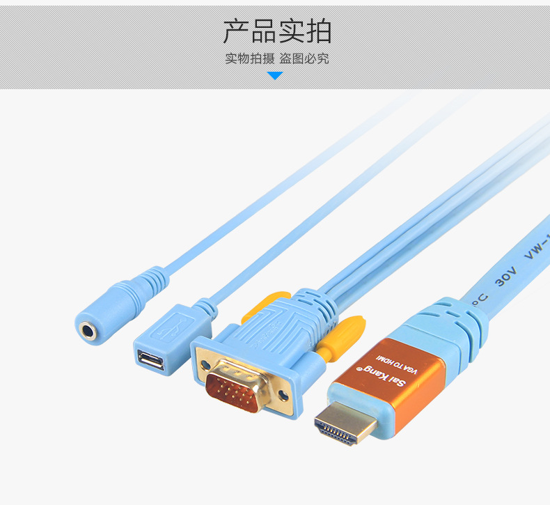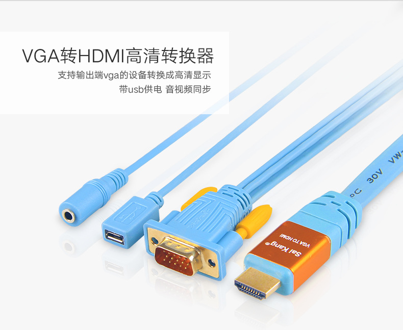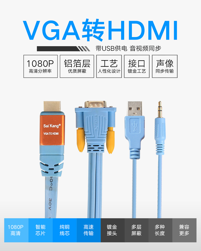 赛康vga转hdmi线转换器VGA公转HDMI公电脑连接电视高清头带音频