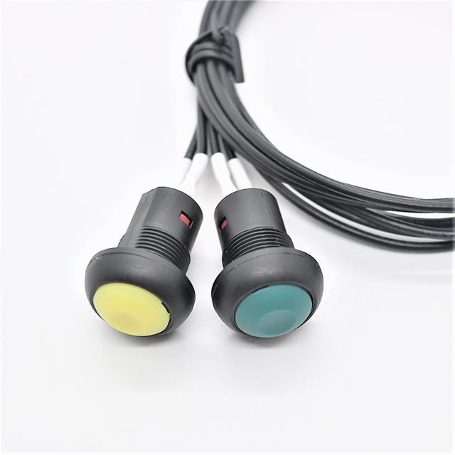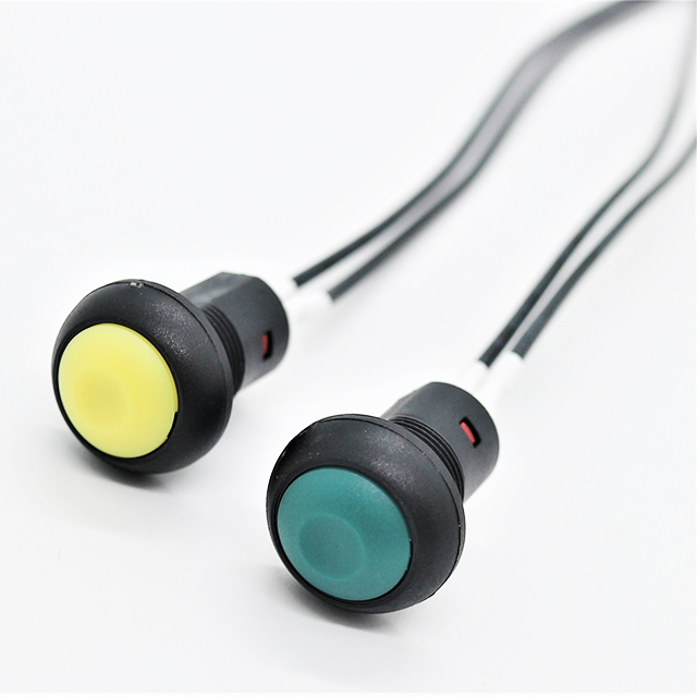 圆线12MM带线复位自锁开关 焊线塑胶按钮开关