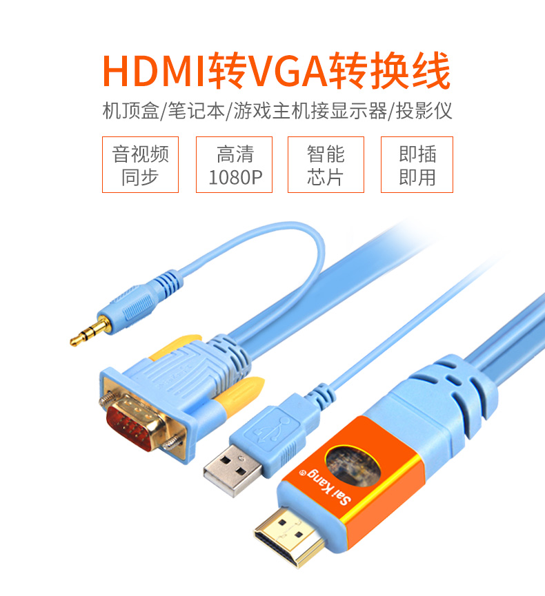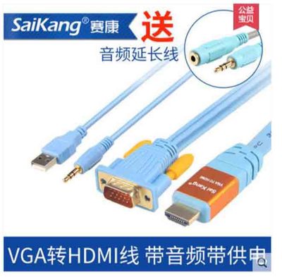 赛康vga转hdmi线转换器VGA公转HDMI公电脑连接电视高清头带音频