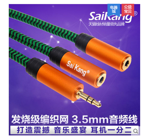 saikang 耳机一分二延长线 耳机线音频线 高保真音质 3.5mm公对母