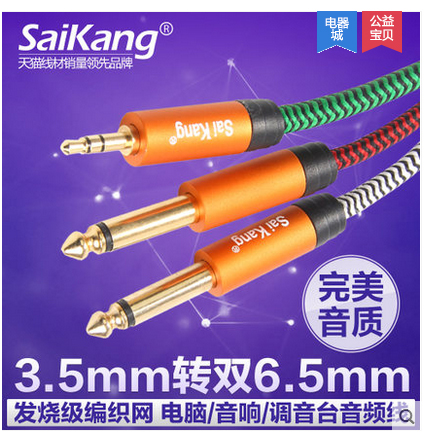 saikang AV203一分二 3.5转双6.5大两芯 音频线 电脑调音台连接线