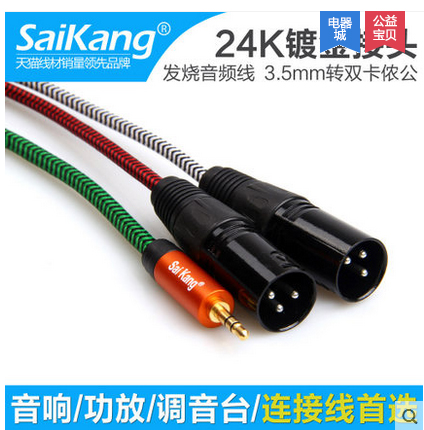 saikang AV205麦克风话筒线3.5转双卡侬母 功放调音台音频连接线