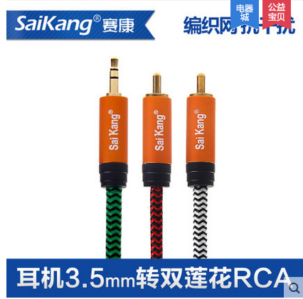 saikang AV202 耳机3.5转双莲花 电脑功放连接线 手机音频信号线