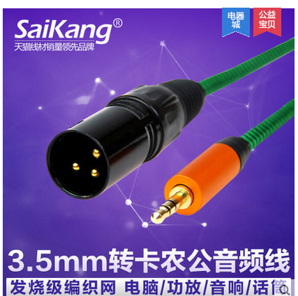 saikang AV203麦线话筒线 3.5转卡侬公高保真电脑功放音频信号线