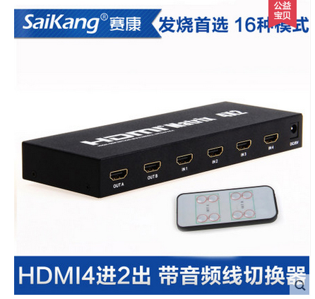 HDMI切换分配器 1.4版3D四进二出 矩阵4进2出转换器 1080P带音频