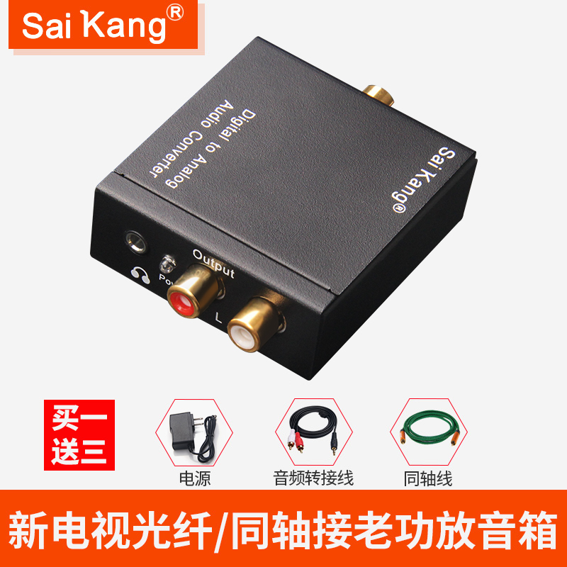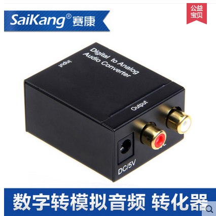 saikang音频转换器AV双莲花RCA模拟信号转同轴数字光纤音频转换器